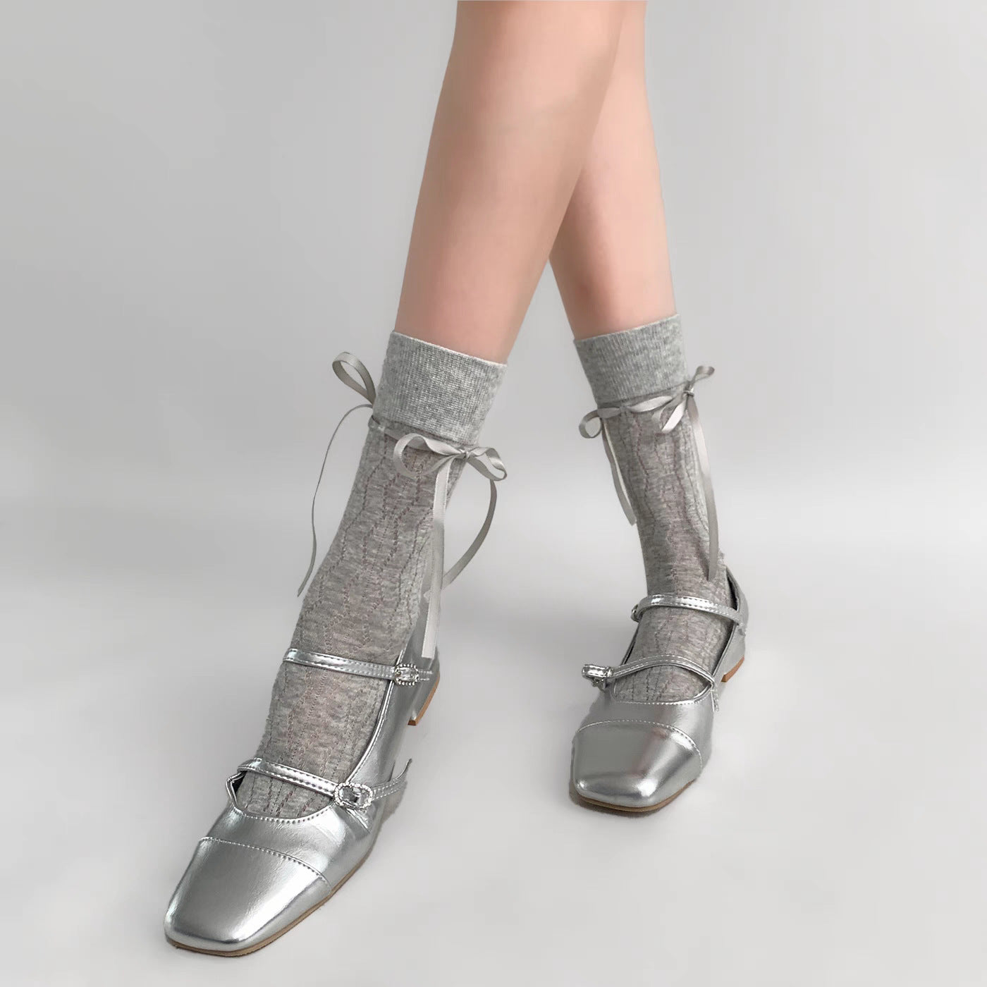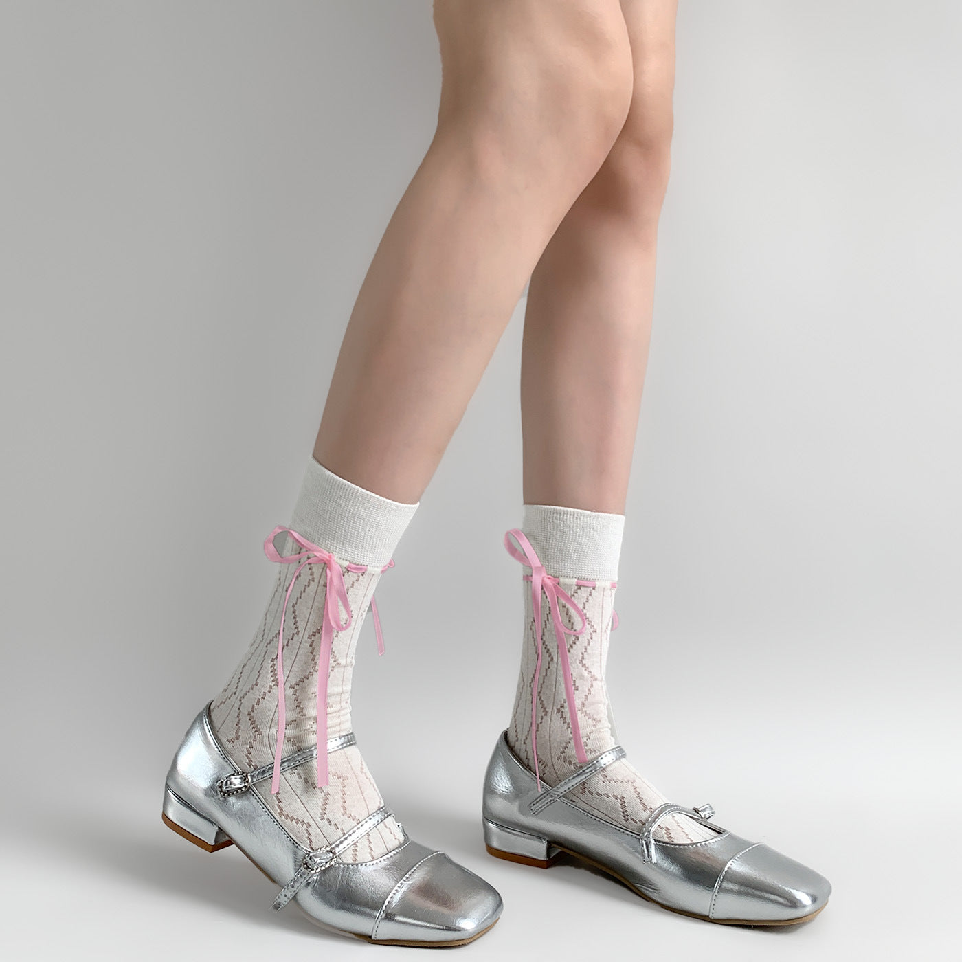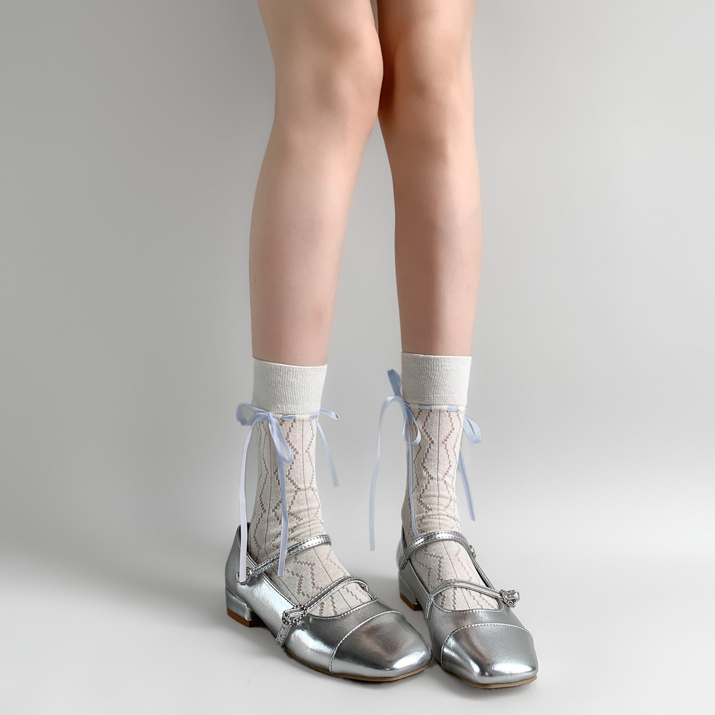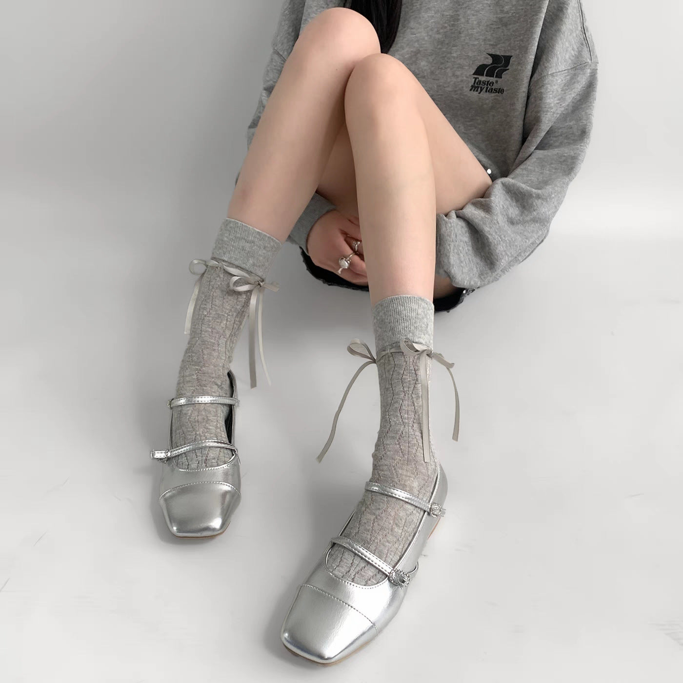 • Mid-calf Length, Bowknot, Ribbed Cuff, Breathable Socks