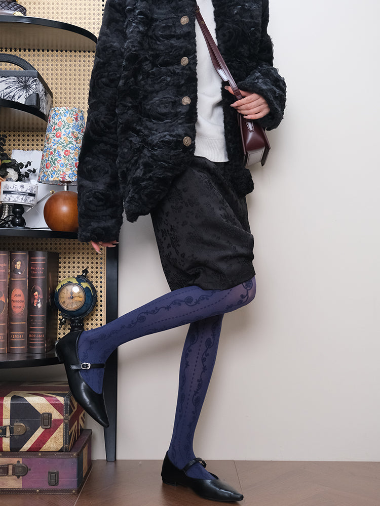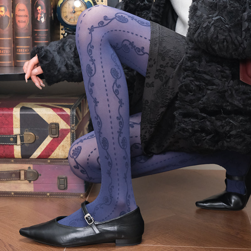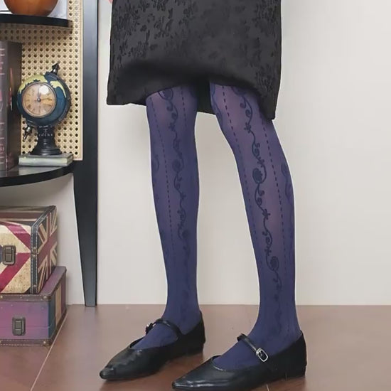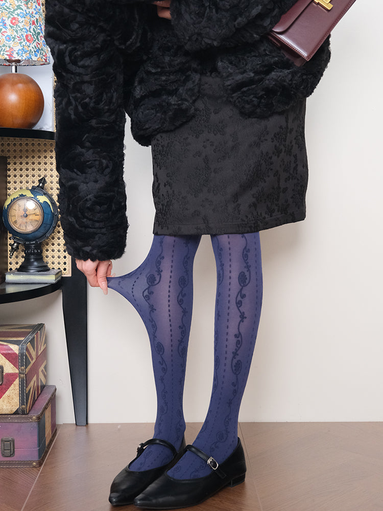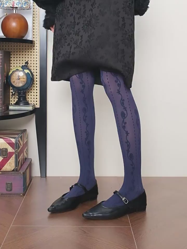 Jacquard Lace patterned semi-sheer navy Tights