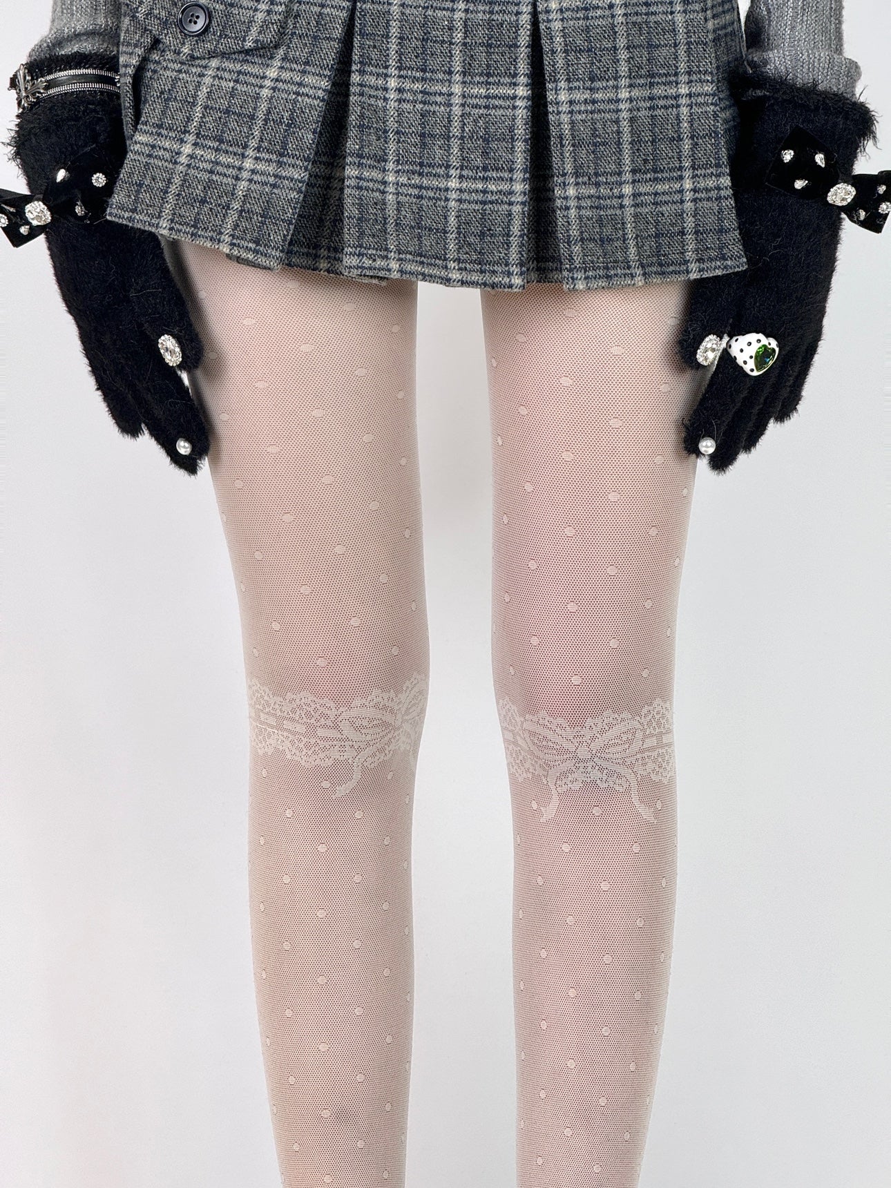 Sheer Thigh Patchwork Lace Tights with Polka Dots