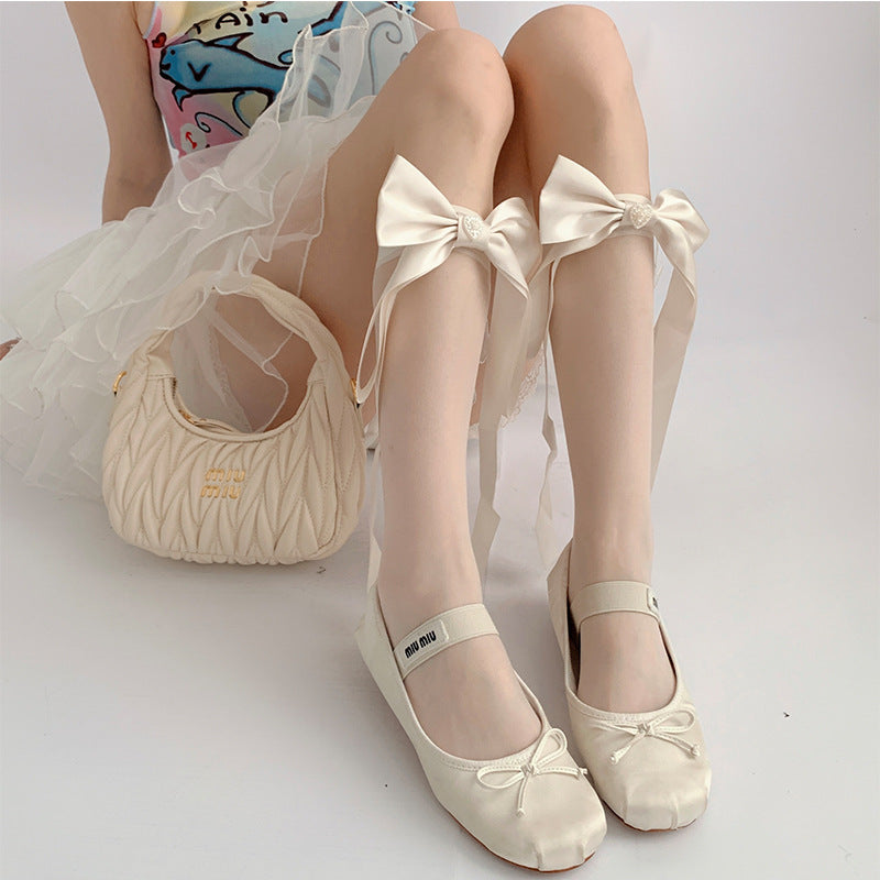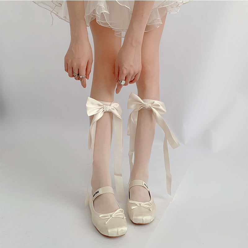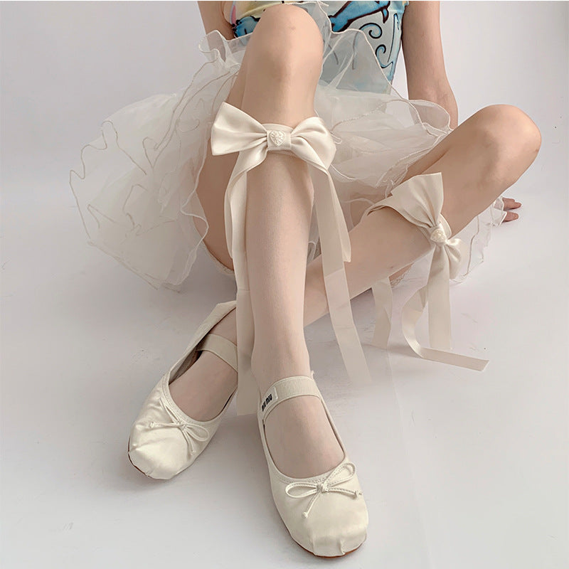 Home Sheer Socks Bow Calf Sheer Socks