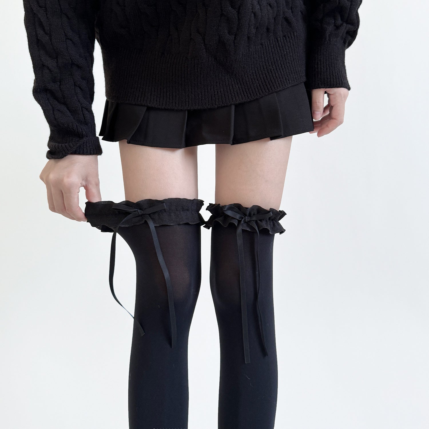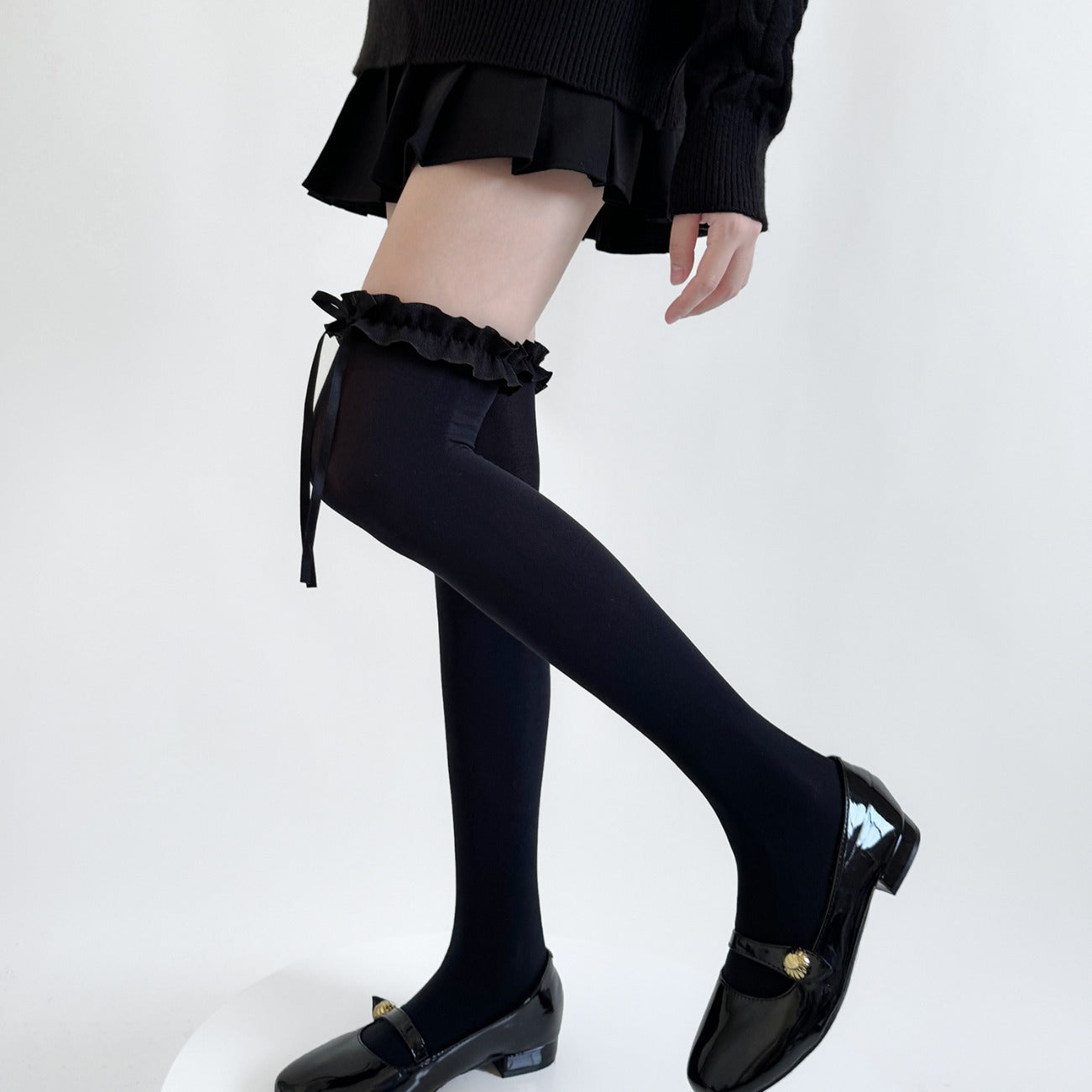 Ruffle Bow Knee High Sheer Socks