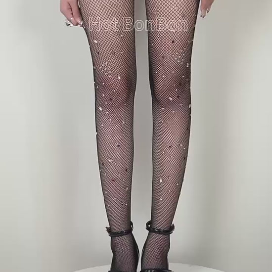 Channel ultimate Y2K glam with these Rhinestone Fishnet Tights! Designed to make you shine and slay, these tights feature delicate rhinestones that catch the light, giving your look a dazzling edge. The classic fishnet design adds a bold, sultry vibe—perfect for nights out, festivals, or just elevating your everyday style.