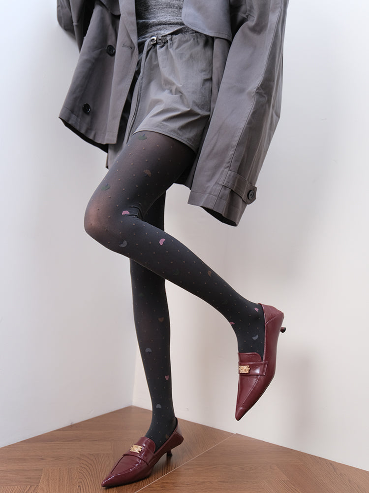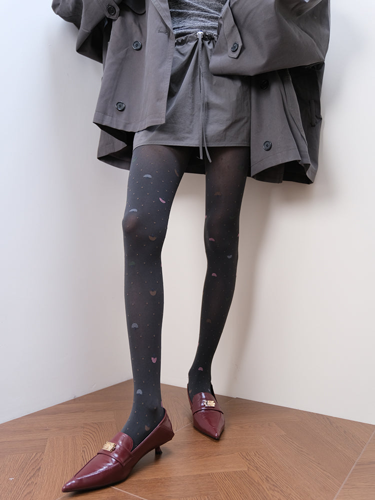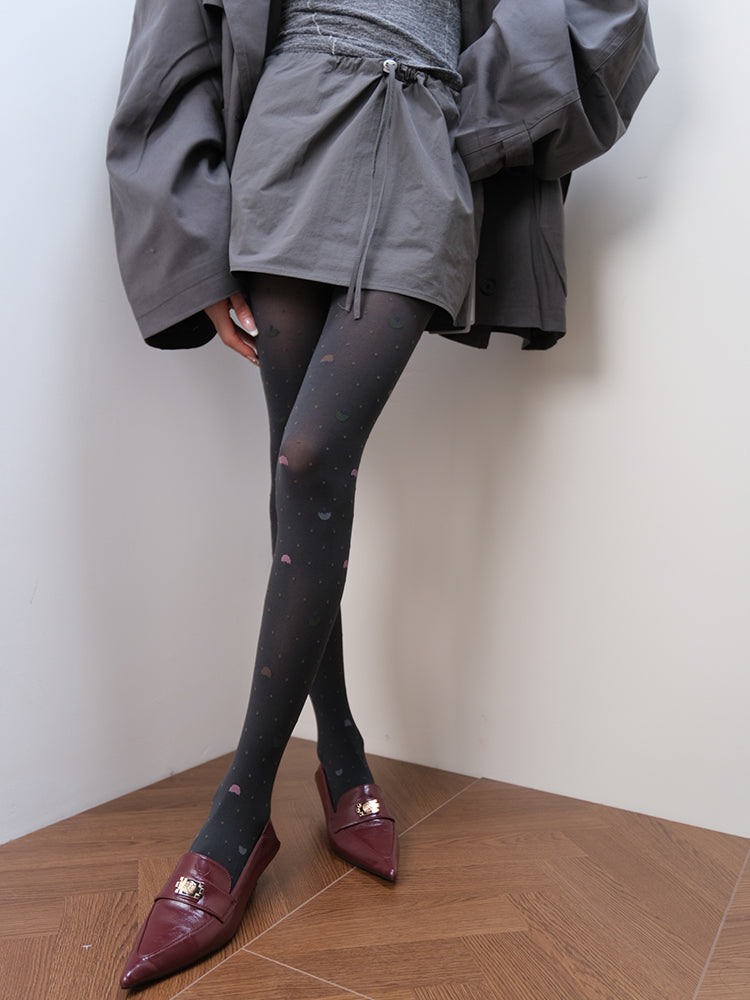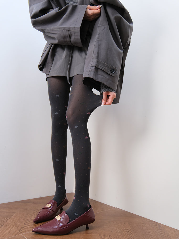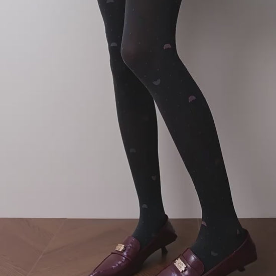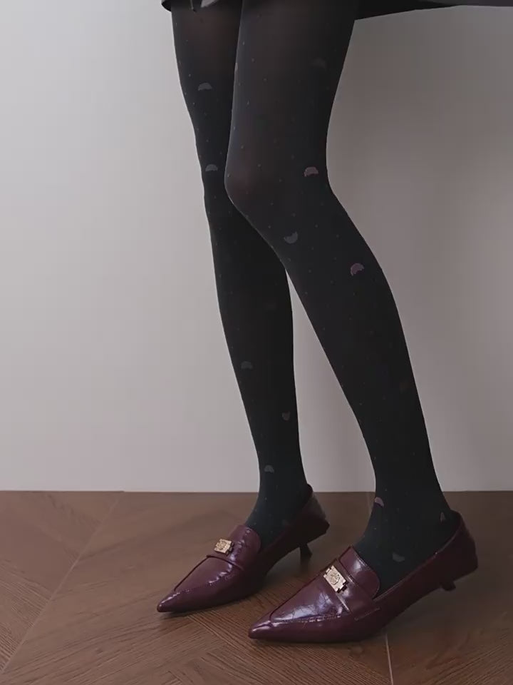 Step into a world of fun and sophistication with these Polka Dot Umbrella Jacquard Tights. Featuring a charming umbrella pattern combined with classic polka dots, these tights offer a unique, playful twist on traditional hosiery. The intricate jacquard weave adds texture and depth, creating a refined yet whimsical look. Perfect for pairing with skirts, dresses, or even shorts, these tights add an unexpected touch of elegance and fun to any outfit, making them ideal for both casual and dressy occasions.